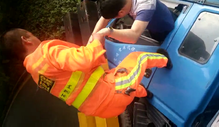 货车侧翻1人被困 BG大游公司最美环卫工奋力救人!